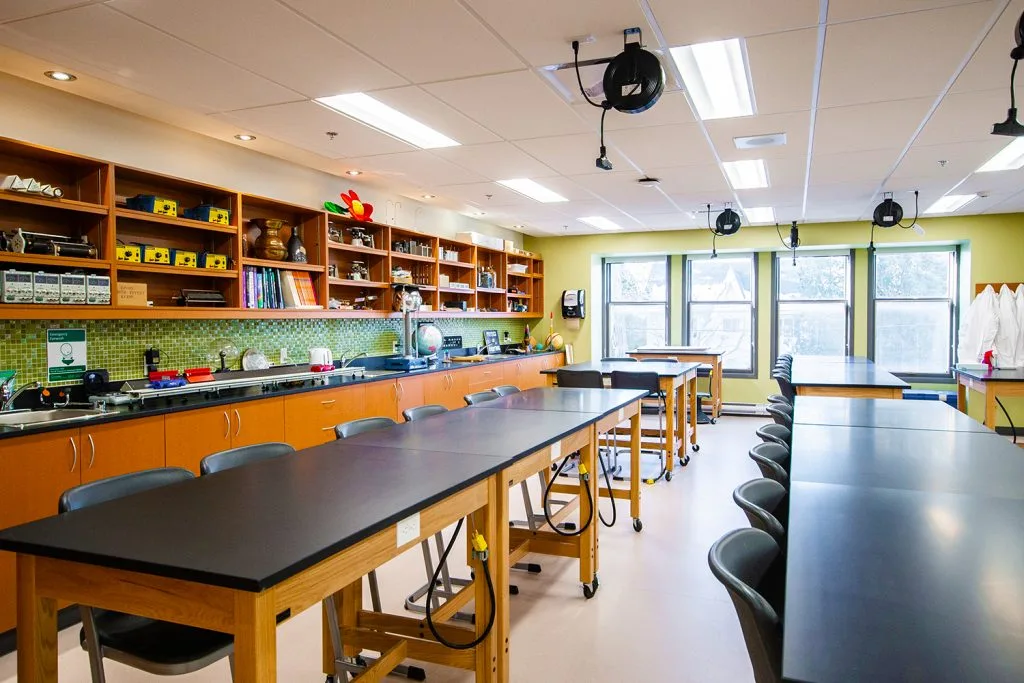 This project was an extensive renovation and upgrade of Elmwood’s Biology and Physics labs which were originally built in the 1950s. The space features a number of unique design elements, including glazing details, custom millwork and curved walls. The scope of work also included solving HVAC issues, new sprinkler work and M&E. Terlin has completed a number of projects for Elmwood School over the past decade, including washroom and classroom renovations, the fit-up of the school uniform shop, and custom millwork to match heritage elements in the original part of the building (built in 1923).